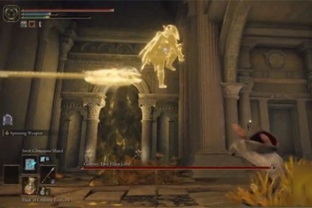 1、BOSS为持有大斧的金色幽灵,该战斗相对简易,因BOSS攻速缓慢且攻击范围有限,招式单一重复。