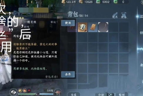 6、请点击游戏背包进行查看,并选择使用一缕青丝,这样便能轻松地获得相应的“XX的仰慕者”称号了。