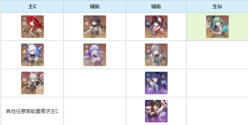 群体能量恢复、负面效果接触、攻击力提高,以及能够为我方全体回复生命值的回复型角色。