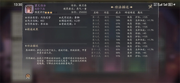 以人上武学为例,其熟练度上限为30000,施放技能时大约消耗150点内力。