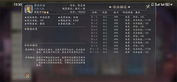 施放技能时内力消耗约为450点,这使得技能施放次数从32次减少到大约15次,显著降低了持续战斗能力。