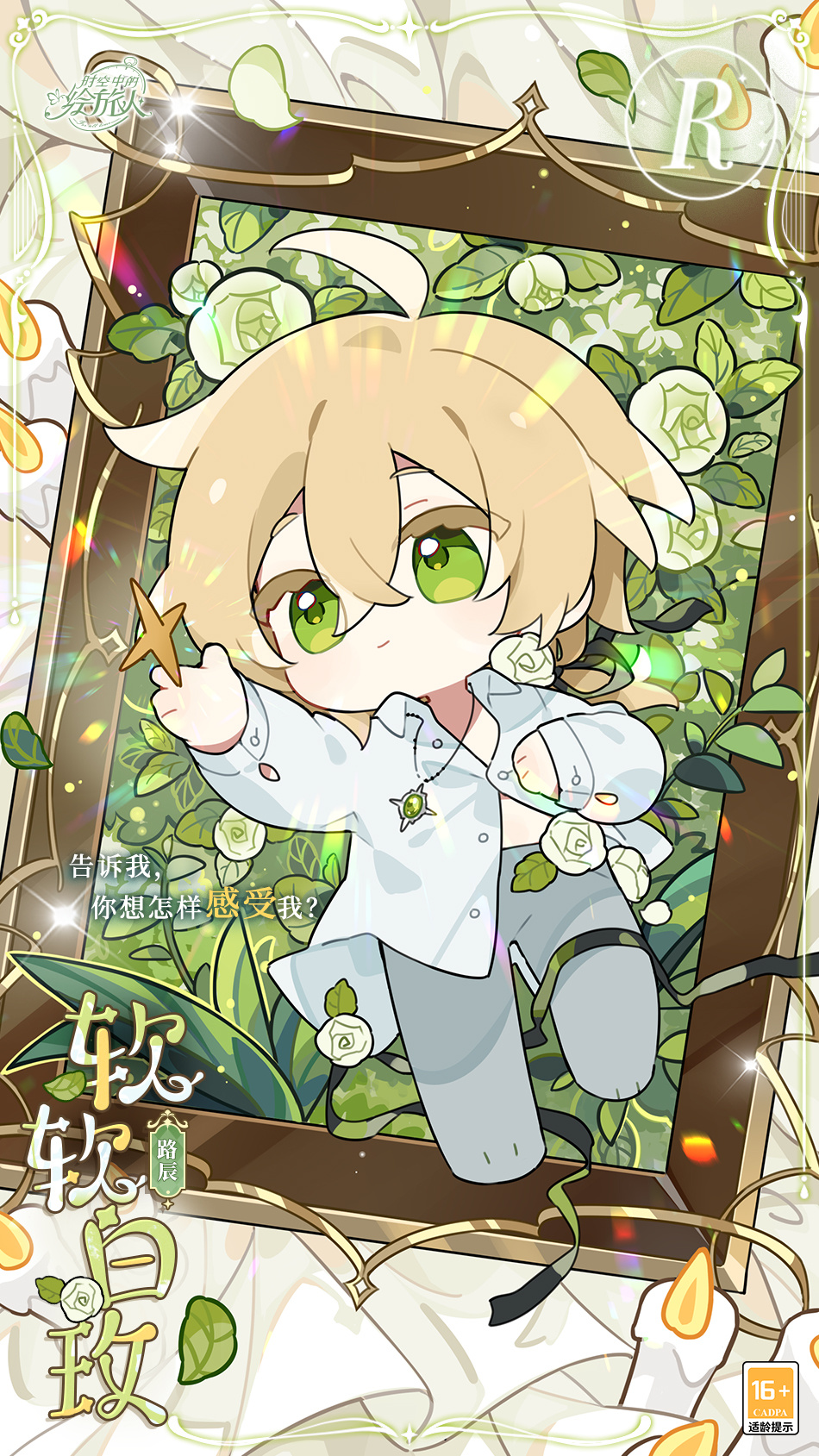 8月10日09:30 - 8月24日05:00,参与「繁花之吻」活动,可在[礼品兑换]中换取全新Q版画灵路辰R[软软白玫]。