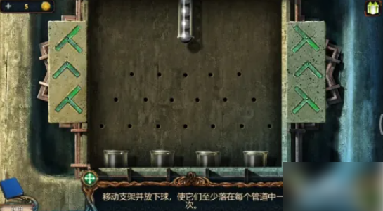 放进去后,完成小游戏。通过移动支架,让每个管至少进入一个球。