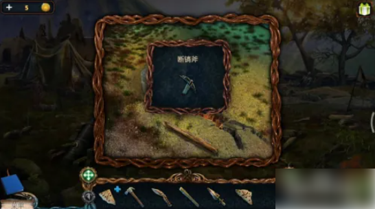 动画播放完,点击左边的树桩。从树桩上拿到半条钳子。