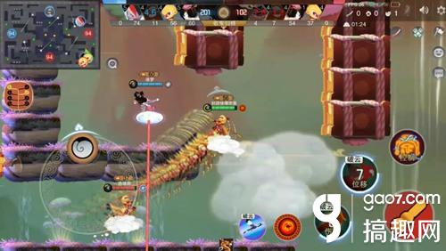 孙悟空在团战的时候,同样可以以2技能进场,然后释放大招控制敌人,给队友更好的输出环境,自己再使用1技能攻击,如果血量不足,再次点击2技能退场回血。