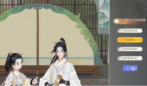 射雕答题环节往往是考验玩家对金庸武侠世界的了解程度,其中无定坊勾栏瓦舍答题位置就在勾栏瓦舍,玩家需要找到npc王润卿,然后和他对话即可开始作答。