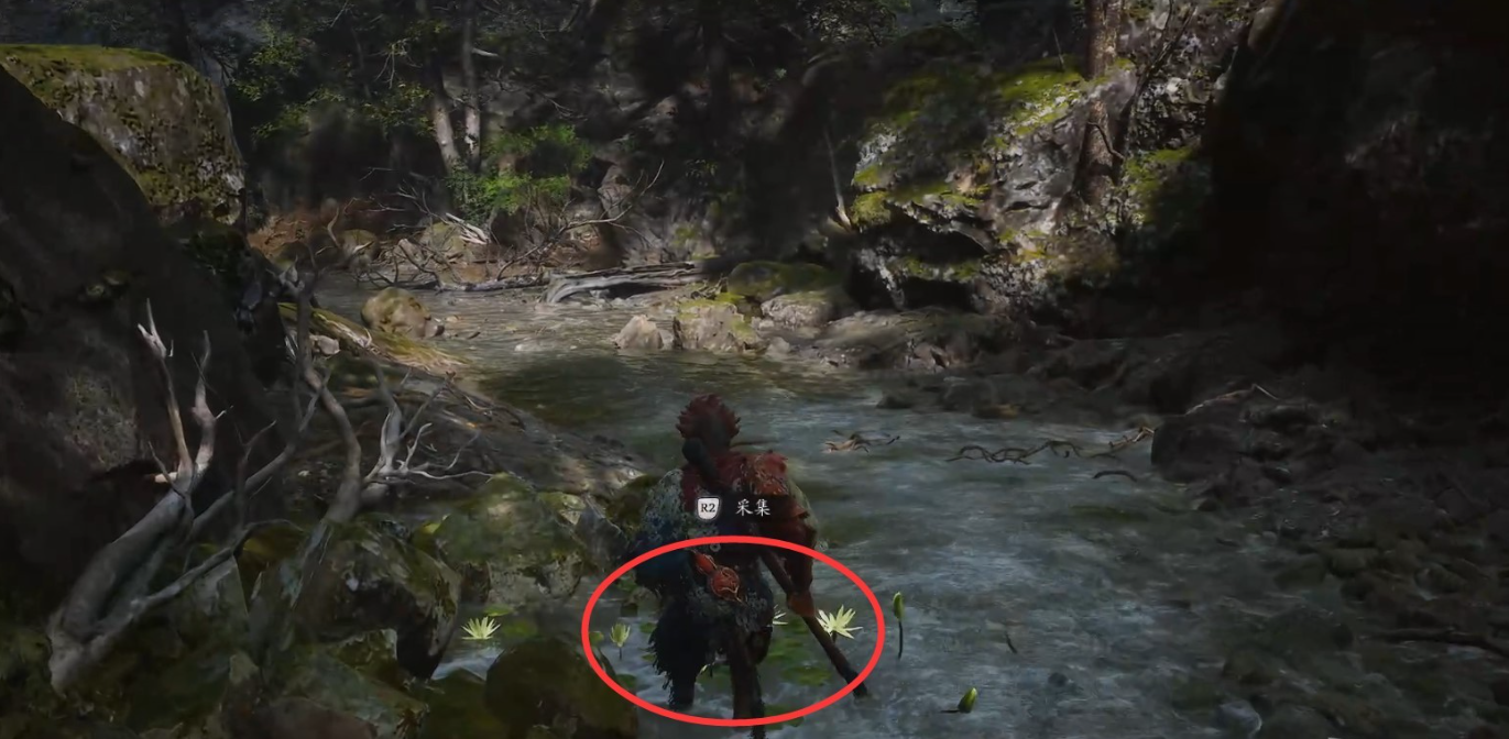 9、先向右跳到桥下面到河流的源头,有灵蕴(货币)可以采集。