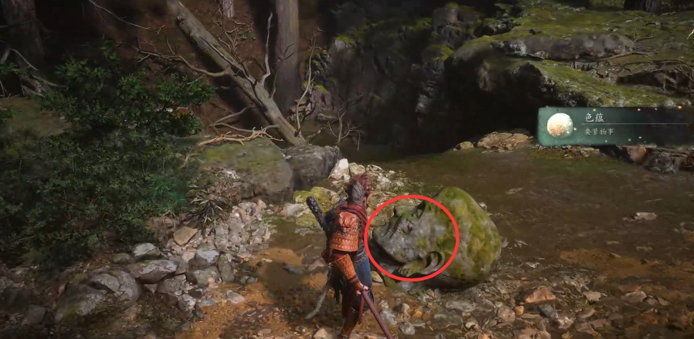 12、在河流的尽头,看到个鬼鬼祟祟的家伙。待它走后,过去调查佛头,得到【色蕴】。