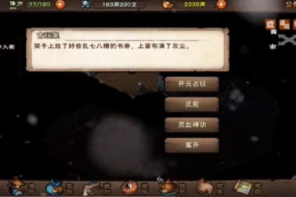 6、再次进入洞穴,记得点火折子,尸骨检,查看古玩架以及书案,用铁锹挖掘收尸,然后东方天工问你玉佩怎么处理。