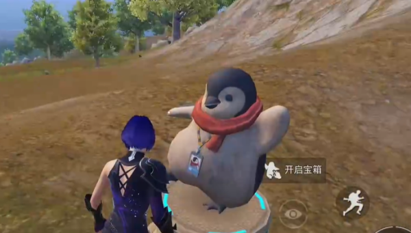 2、附近的山坡上,有几只企鹅雕塑玩家找到后靠近可以打开宝箱。