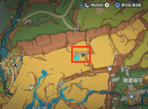 1、首先,启动您的地图,设定目标为彩石顶下方标记的营地。