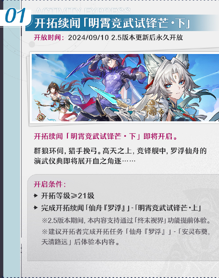 崩坏星穹铁道2.5新版本将在9.10日更新后正式上线,本次新版本大家知道都有哪些活动吗?下面为大家带来的具体内容,感兴趣的玩家们千万不要错过哦!