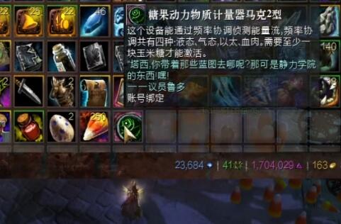 2、然后打开背包,在其中使用“糖果动力物质计量器马克2型”(需要背包里有玉米糖块)