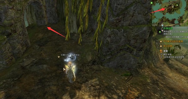 2、走到右上角图示位置的地方有一个洞口,从这里进去。