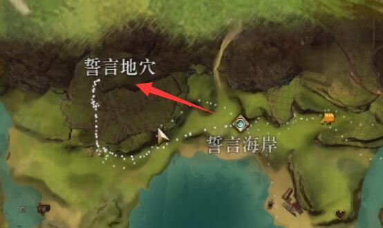 1、在誓言地穴,从海岸传送点往左上角走。