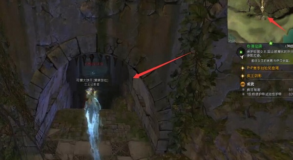 2、来到裂口这里有一个小拱门,具体可以看看右上角的小地图。