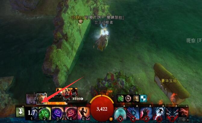 2、来到这个位置后,还是使用道具,注意这里要用2技能了,不是3技能。