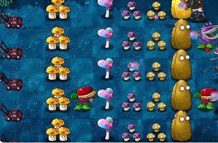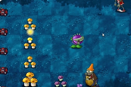 2、提供太阳解决后再僵尸位置种植食人花,以及小喷菇跟坚果抵挡一下。