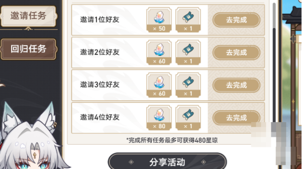 4、完成了任务我们可以获得12抽奖券,还可以得到星穹480个。