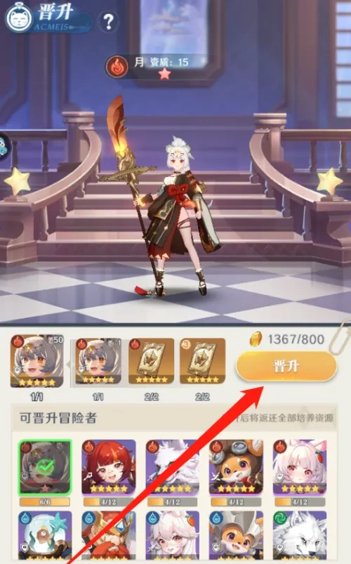 2、选择自己想要晋升的SSR角色,消耗足够的材料就能升级。