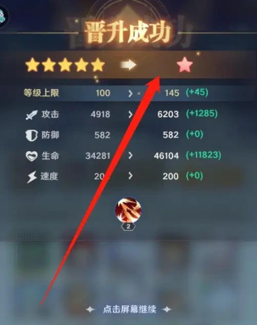 4、升星之后可以提升角色的等级上限值,各种属性也会上升。