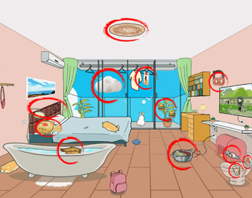 2、所有隐藏食物的位置如图所示,大家只需要把放大镜拖到这些位置然后点击镜片,就能减掉卡路里了