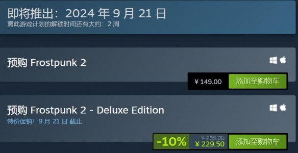 1、该游戏有两个首发阶段,分别是原价预购跟首发预售促销。