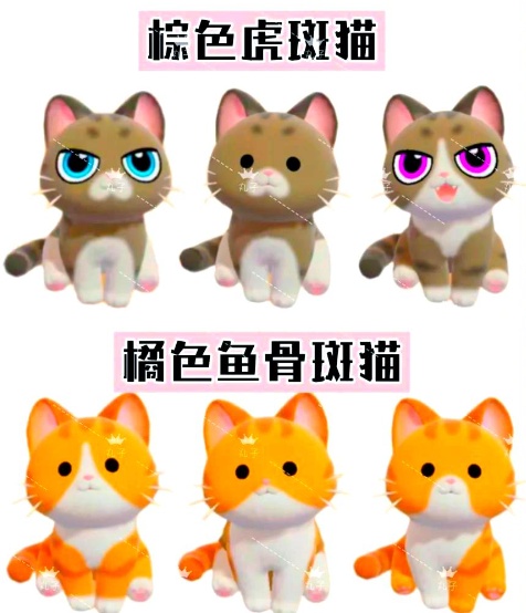 还有外形可爱的棕色虎斑猫、橘色鱼骨斑猫、浣熊猫、银色古典斑猫。