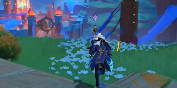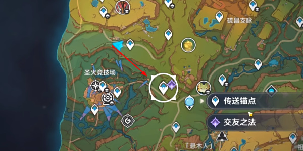 3、接着我们跟随任务指引传送到圣火竞技场右上角的传送锚点,出锚点后跟随指引采摘两朵新鲜的烛伞蘑菇。