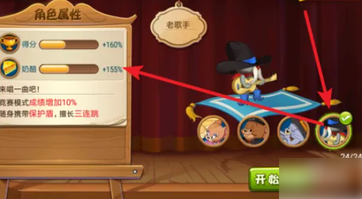 最后一个角色就比较厉害了,他是老歌手,得分+160%,奶酪+155%。