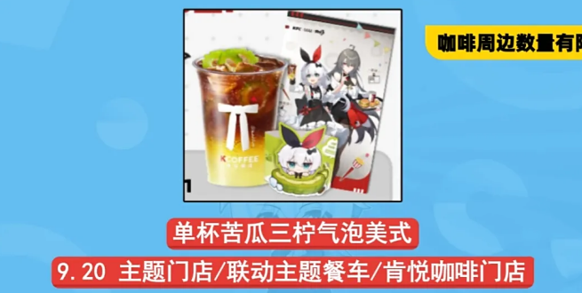 5、9月20日后,在主题门店、联动主题餐车以及肯悦咖啡门店,点单杯苦瓜三柠气泡美式,有机会可以得到联动的杯套和联动银卡明信片。