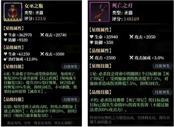 圣器方面推荐玩家选择女巫之瓶,可以为角色带来超强的生命值和防御力。