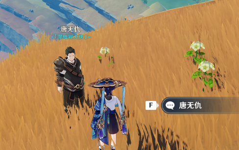 1、来到点位后拾取唐无仇周围的远眺之花即可触发对话。