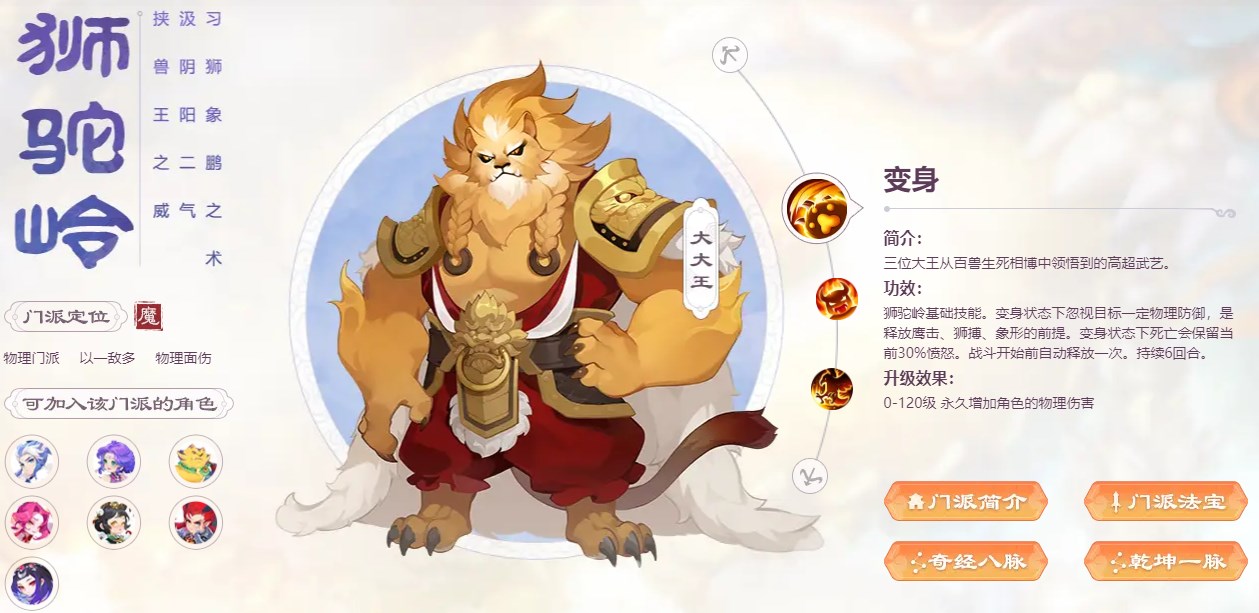 门派缺陷:受变身回合限制、机动性差