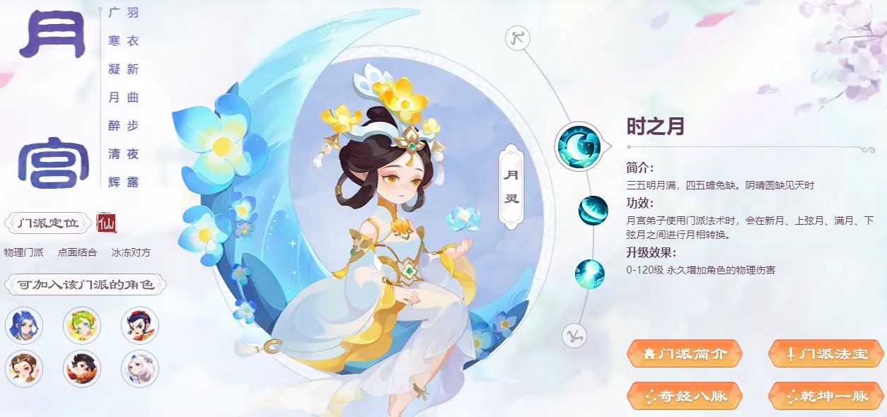 玩法建议:月刃标记、月影点飘、月凝冰冻,机动性极强且伤害稳定的物理门派,然而月相越满承伤越重