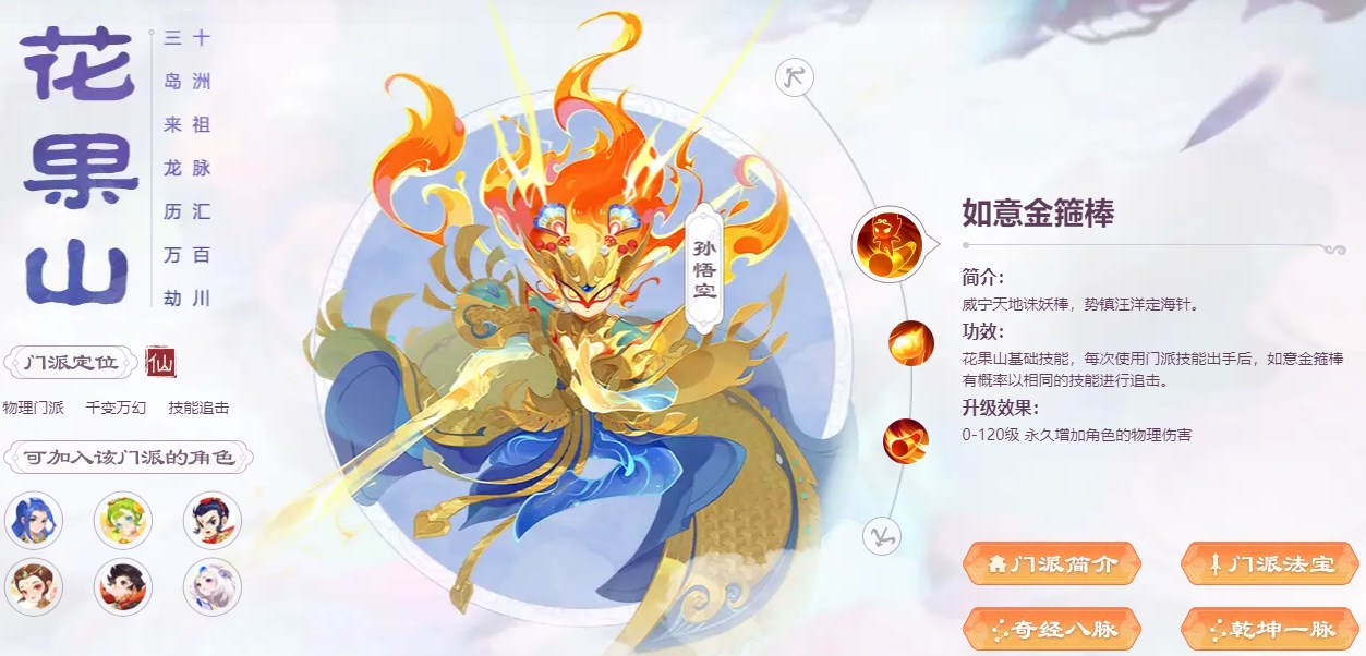 本文致力于给新手推荐最适合自己的门派,梦幻共有物理、法系、辅助和封系四大体系门派,物理门派有大唐官府、狮驼岭、月宫和花果山;法系门派有龙宫、须弥海、魔王寨和小雷音寺;辅助门派有普陀山、化生寺和阴曹地府;封系门派有方寸山和女儿村(只有女性角色可转),接下来就每个门派具体进行分析——