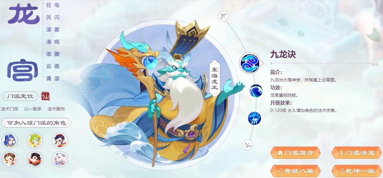 玩法建议:龙腾单秒、龙卷群伤、龙吟炸蓝,伤害稳定且群秒数量极多的法系门派,日常挂机党最爱,非常推荐新手玩家使用