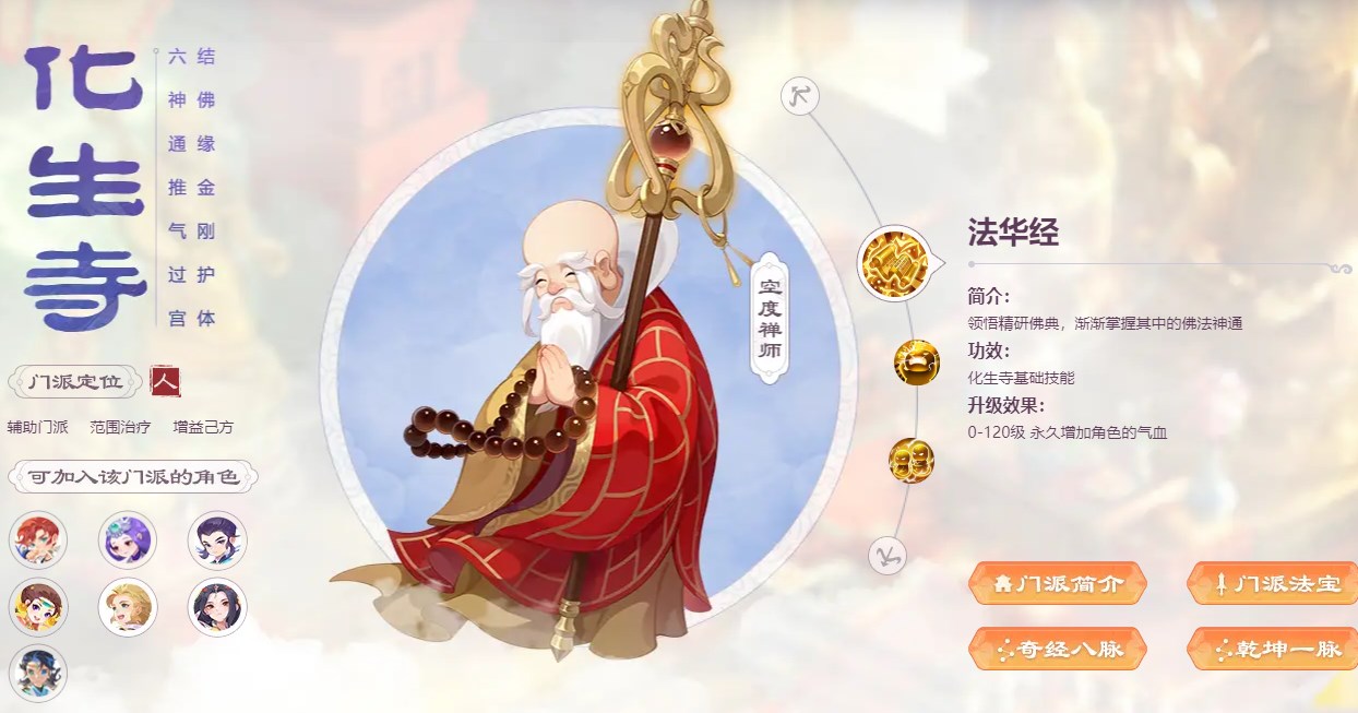 门派优势:复活加血、增益己方、法系辅助