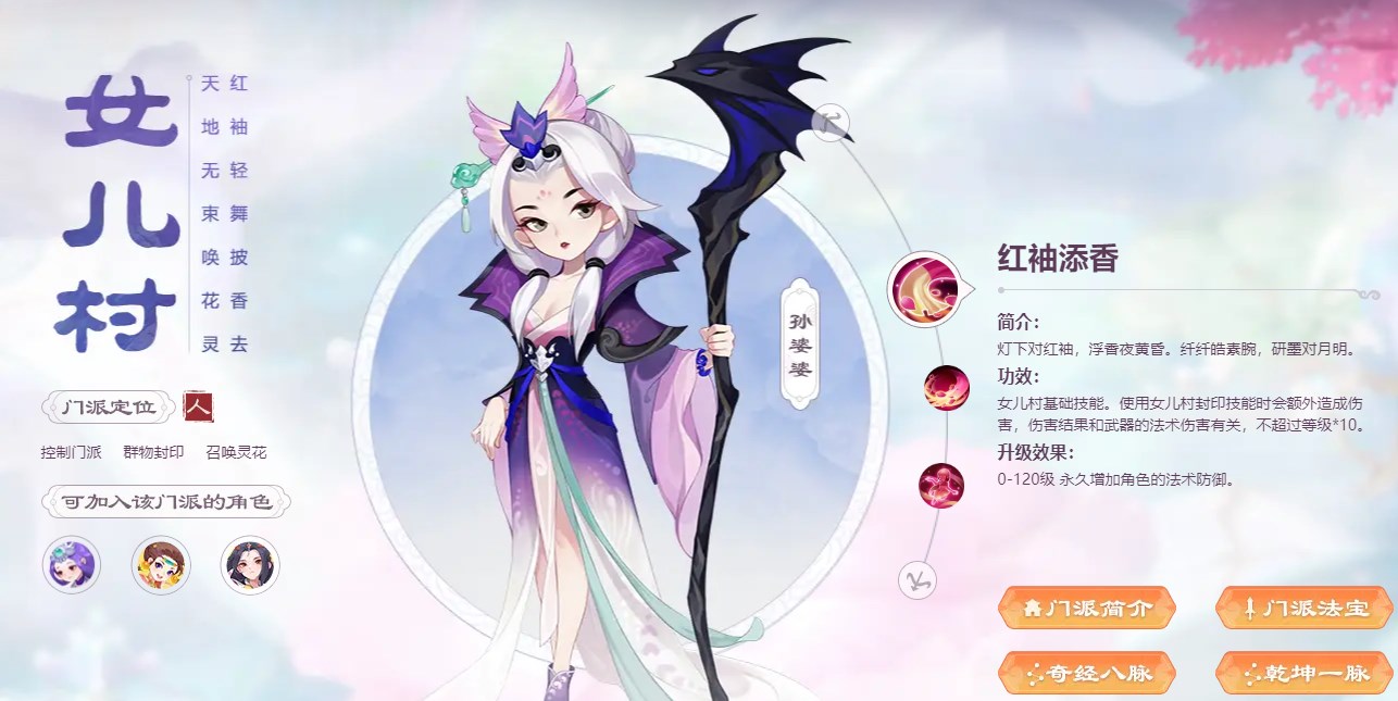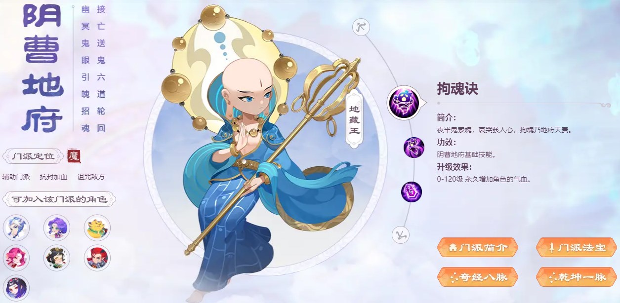 门派优势:抗封加血、诅咒敌方、物理辅助
