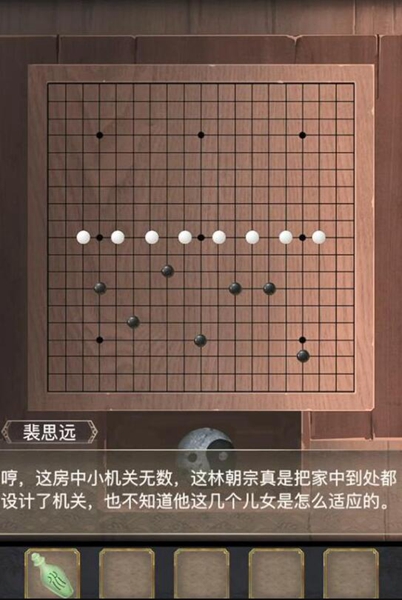 3、然后移动凳子,将点亮的灯笼挂到右上方,看到木头上有字符,根据左右字符调整机关,获得玉佩。