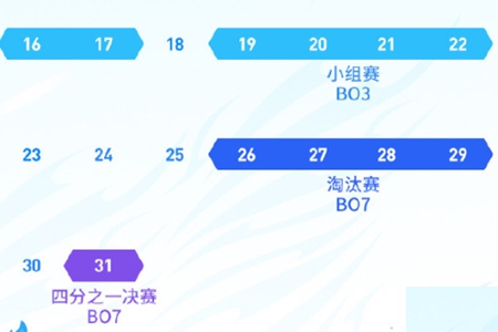 2、参赛队伍共计24支,经抽签分为四组,每组包含六支球队,共进行三轮BO3组内对决,各组前四名晋级淘汰赛。