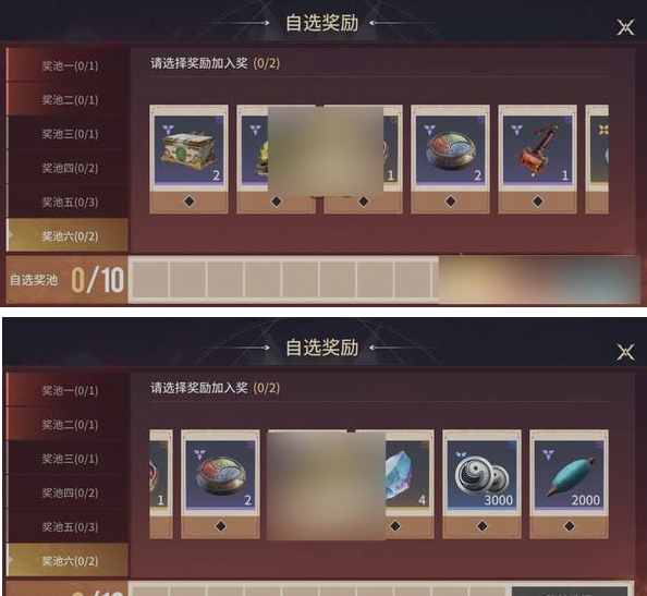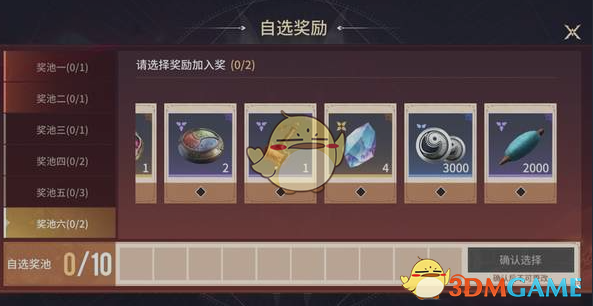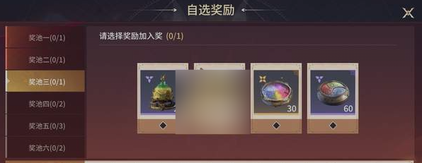 六打奖池包含35件奖励,可自由选择10件组建专属奖池。