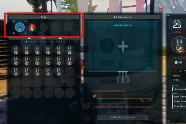 3、选中想要突破的帕鲁后,就可以在不在的队伍里帕鲁中选择要牺牲的帕鲁。