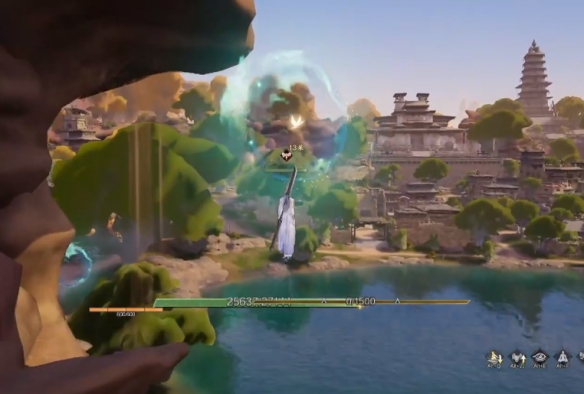 3、降落到岩石上,开启环游绿洲·铜雀挑战。