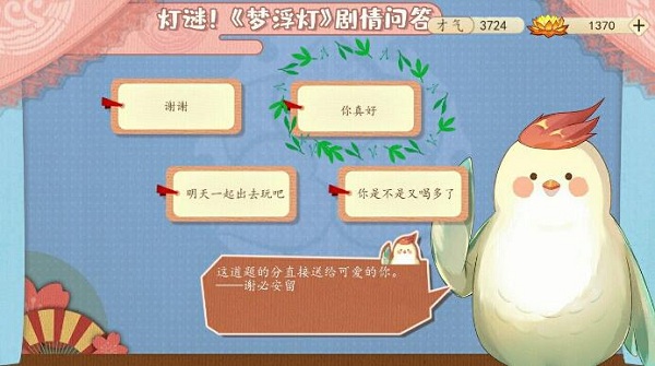 梦浮灯清明灯会活动中的其中一道题目:这道题的分直接送给可爱的你。——谢必安留。这道题目选项中的三个是答案,下面小编就为大家带来了正确答案,快来看看吧。