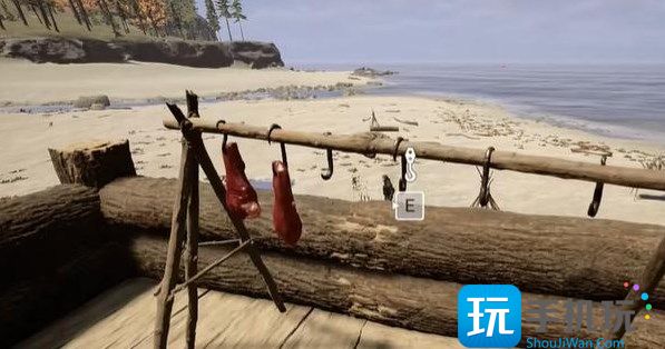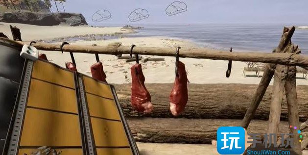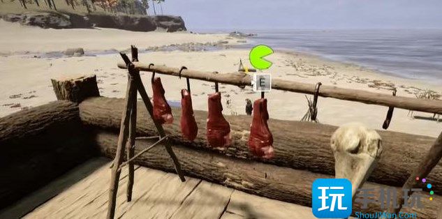 1,首先看到了这里只有俩块肉,玩家需要将包里的肉取出来然后挂在挂钩上面,记住一次只挂一个,前万不能一次挂好几个。