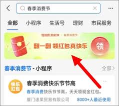 打开支付宝应用程序,在首页搜索栏输入“消费节红包”,点击搜索结果中的相关活动入口,即可进入红包领取页面。