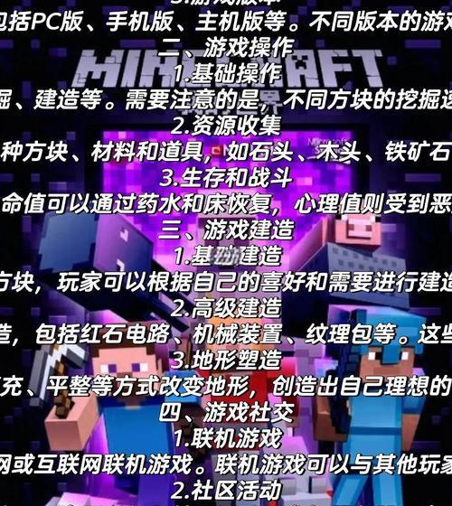 在《我的世界》中,战斗技巧和生存指南是所有玩家提升游戏体验的必备知识。从最基础的挖掘资源到应对各种敌人的策略,再到打造自己的武器装备,掌握这些技巧对于在《我的世界》中存活下来至关重要。本文将全面、细致地为你解析《我的世界》战斗和生存的方方面面,让你在游戏中更加从容不迫。