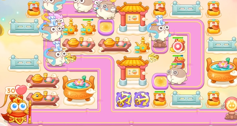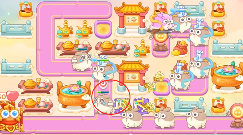 2、看见粉兔直接锁定,二级船锚升三级,左边兔子每个都锁定打。