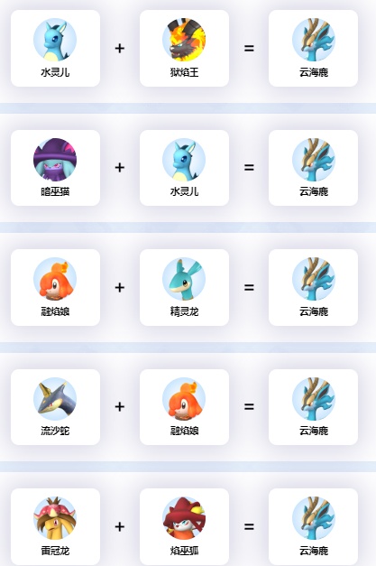 7、融焰娘+水灵龙=云海鹿
